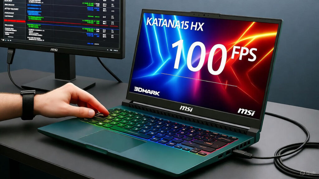 MSI Katana 15 HX pushing 100+ FPS in benchmarks: Cooler Boost 5 keeps it chill under fire – budget gaming that roars.