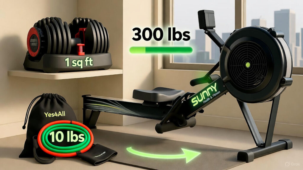 Fit Your Home, Fit Your Life Bowflex SelectTech 552 leads for versatile strength. Sunny rower for cardio. Yes4All for on-go.